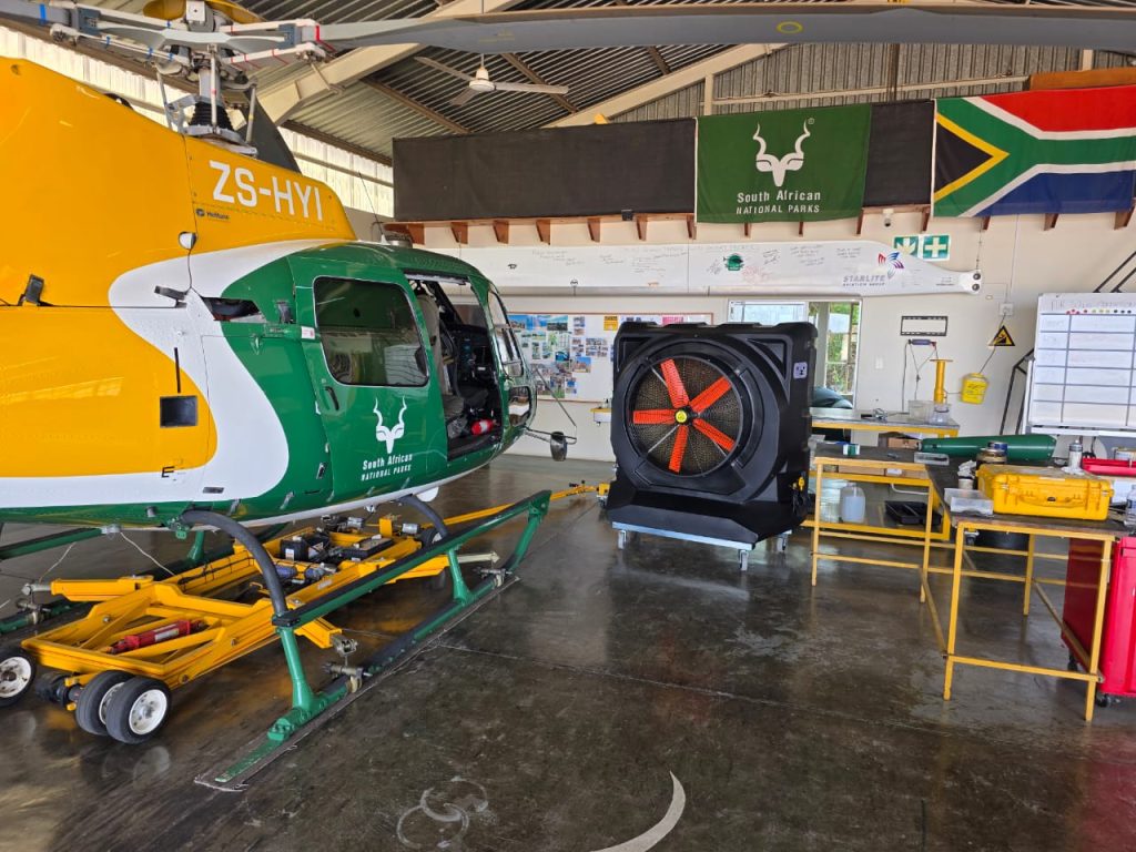 Evaporative cooling at Skukuza Airport became a priority when Mr Simelane from SANParks Skukuza Airport reached out to us with a clear concern: protecting his hangar crew from extreme heat conditions. In the Lowveld’s hot and humid climate, hangars can quickly become unbearable, affecting comfort, concentration, and productivity. His proactive approach reflects what real leadership looks like — caring for people first.